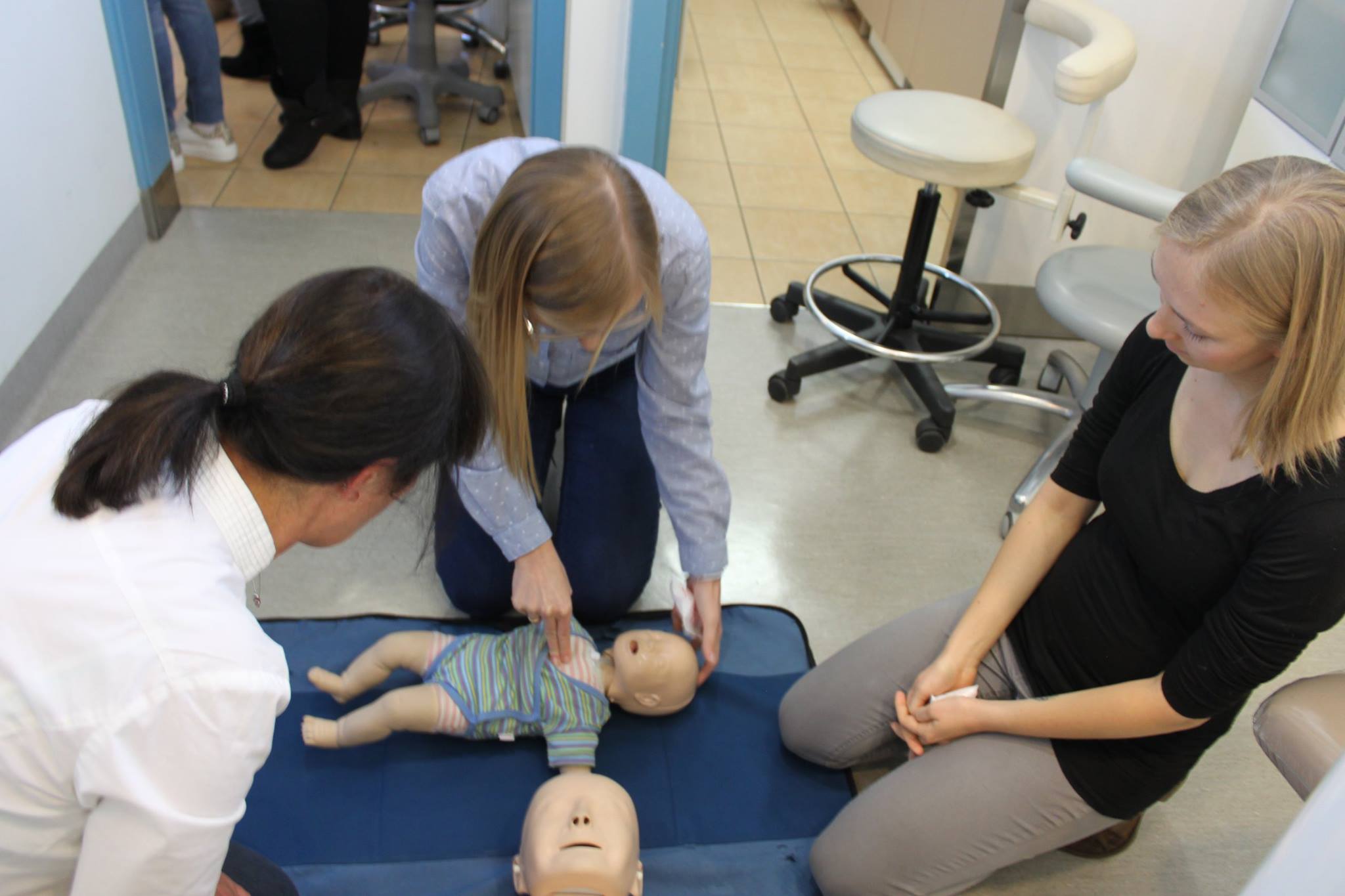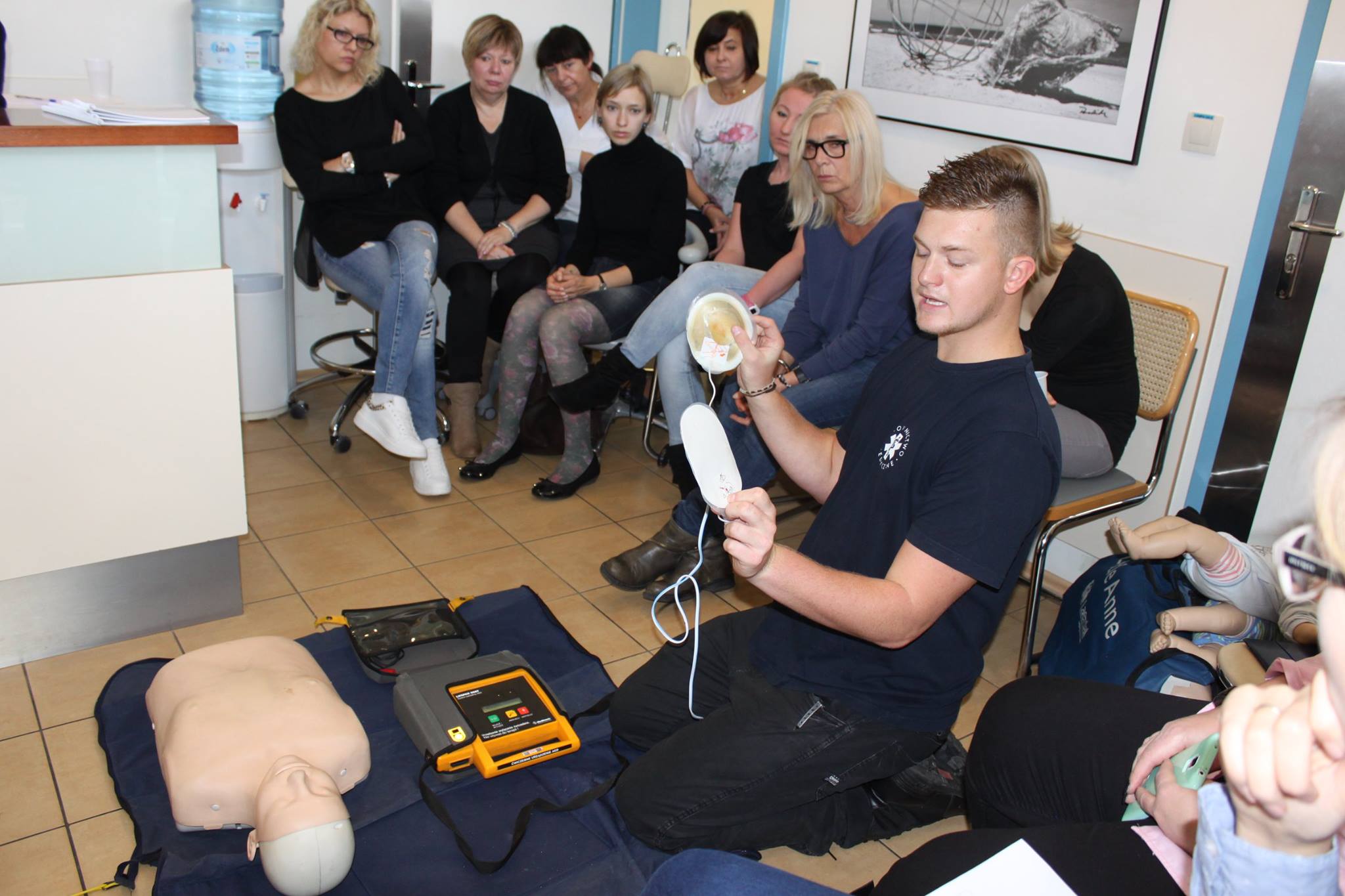Zespół miał okazję posłuchać wykładu oraz przećwiczyć zastosowanie metod udzielania pierwszej pomocy w stanach zagrożenia życia oraz resuscytacji krążeniowo – oddechowej w praktyce.
